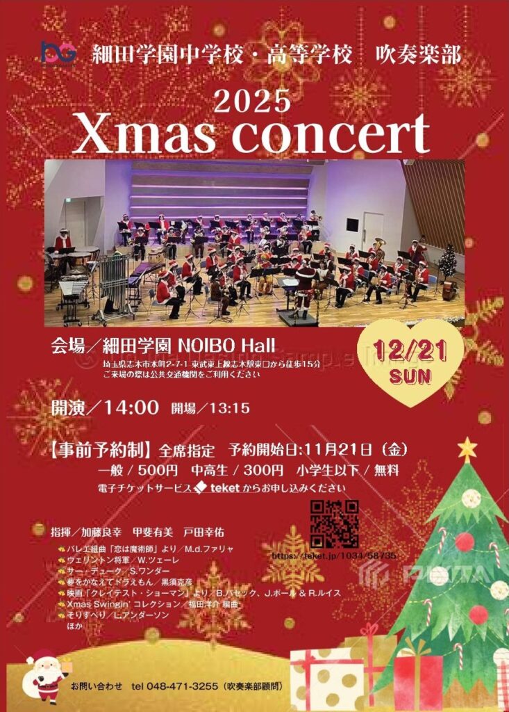 吹奏楽部はフライヤーの通り「2025クリスマス・コンサート」を開催いたします。
