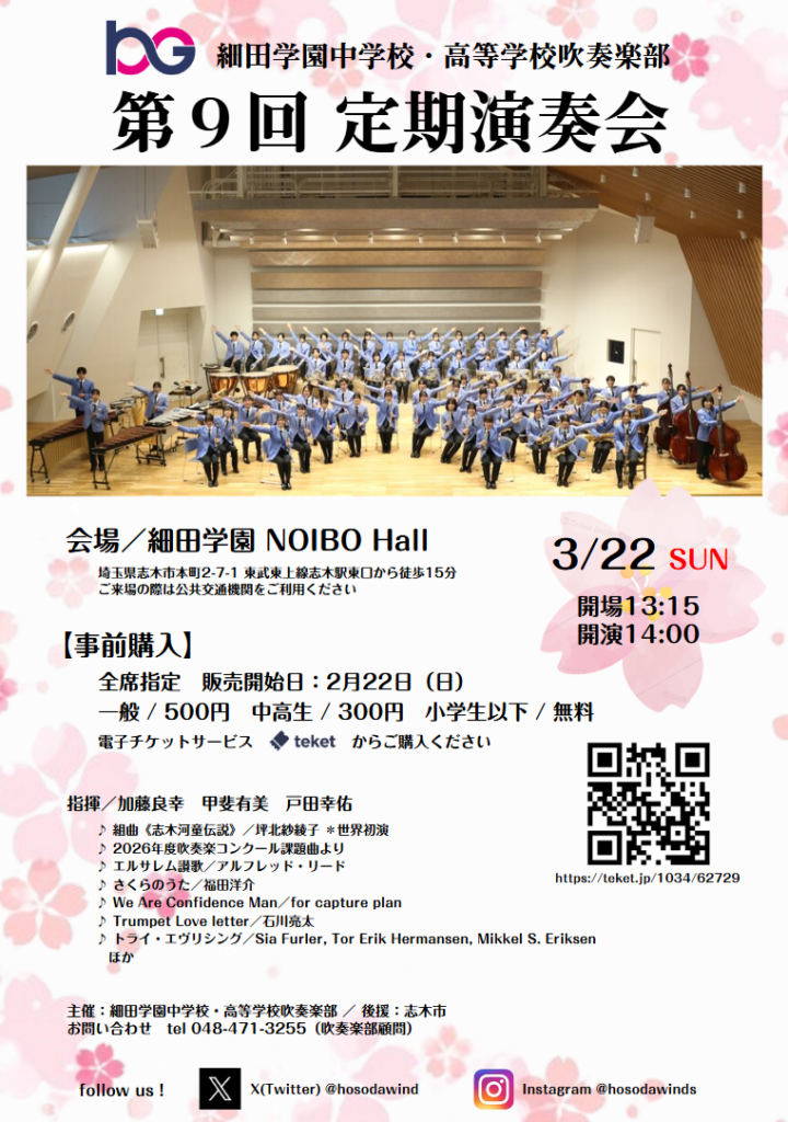 吹奏楽部はフライヤーの通り「第9回定期演奏会」を開催いたします。