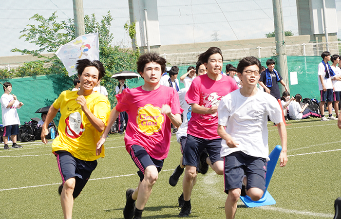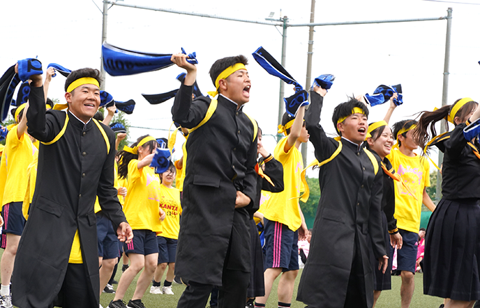 細田学園体育祭。それは計画から実施までのすべてを生徒たちが主導のもと創り上げるイベントです。特に色別対抗応援合戦はそれぞれのチームのまさに「色」があらわれ、毎年多くの観客たちを魅了しています。