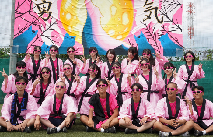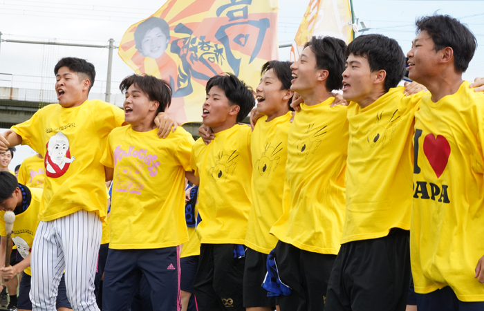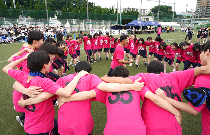 細田学園体育祭。それは計画から実施までのすべてを生徒たちが主導のもと創り上げるイベントです。特に色別対抗応援合戦はそれぞれのチームのまさに「色」があらわれ、毎年多くの観客たちを魅了しています。