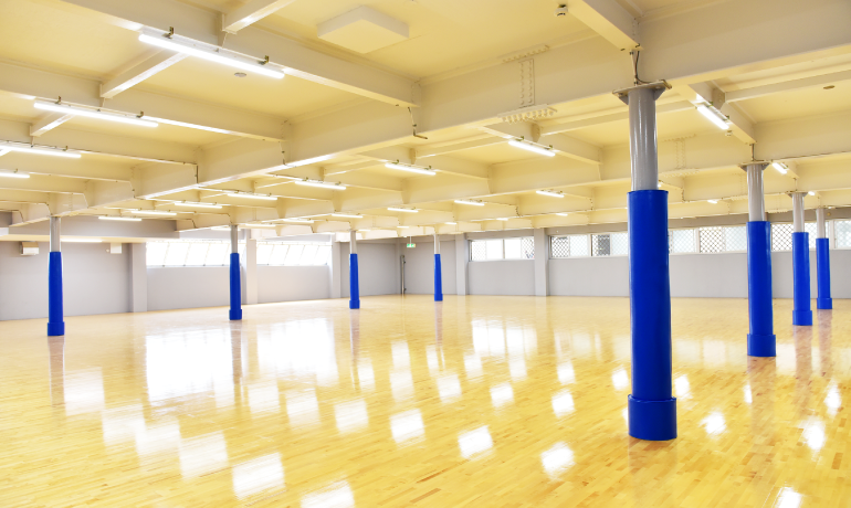 - RISE Hall - - 明るく広々とした多目的ホールは、授業・部活動・生徒会活動などで使用されています。多様な利用形態を想定して、プロジェクター3台を備えています。