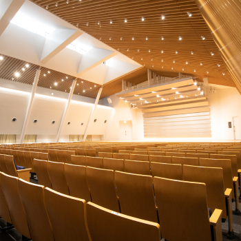 - 800人以上収容できるノイボホールは入学式などの式典が行われます。最新の映像・音響設備を完備しており、授業や講演会などでも幅広く使用されます。さらに、放課後は吹奏楽部などが練習場所として使用しています。